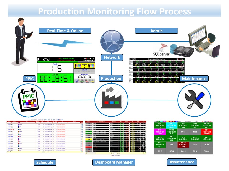 - Dashboard Operator, Manager, Maintenance, Barcode System, SOP.